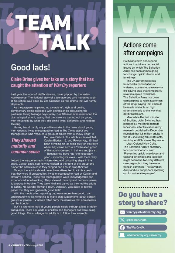 The purpose of The War Cry, the official national publication of The Salvation Army in the United States, is the same as that for which the Army itself was called into being: to communicate the Christian gospel, to bring people to experience Jesus Christ as Savior and inspire them by His example.