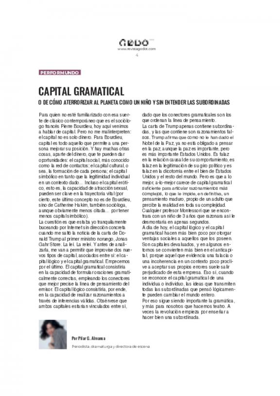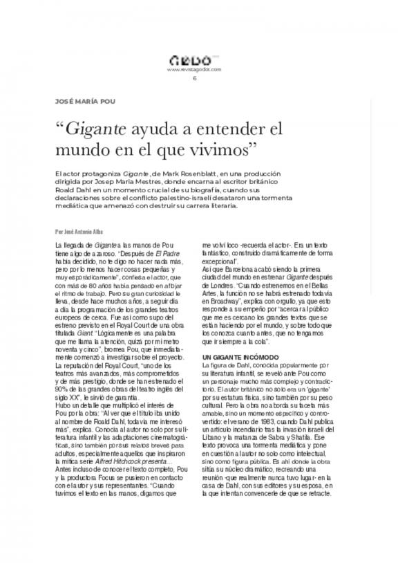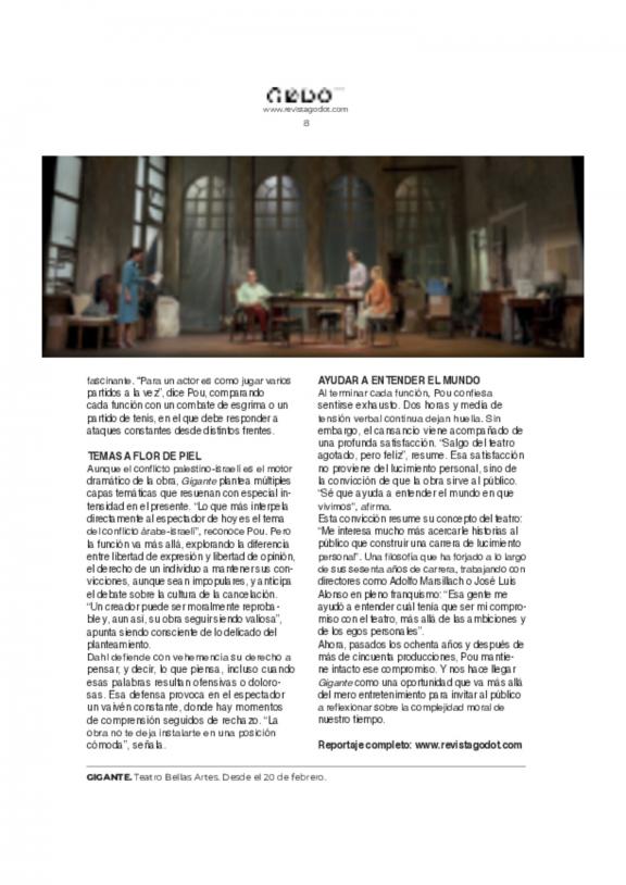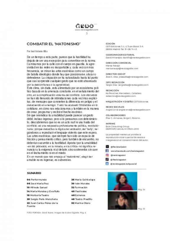 Revista Godot de Madrid es una publicación especializada en artes escénicas, centrada principalmente en la teatralidad, danza y escena cultural de Madrid y España.
