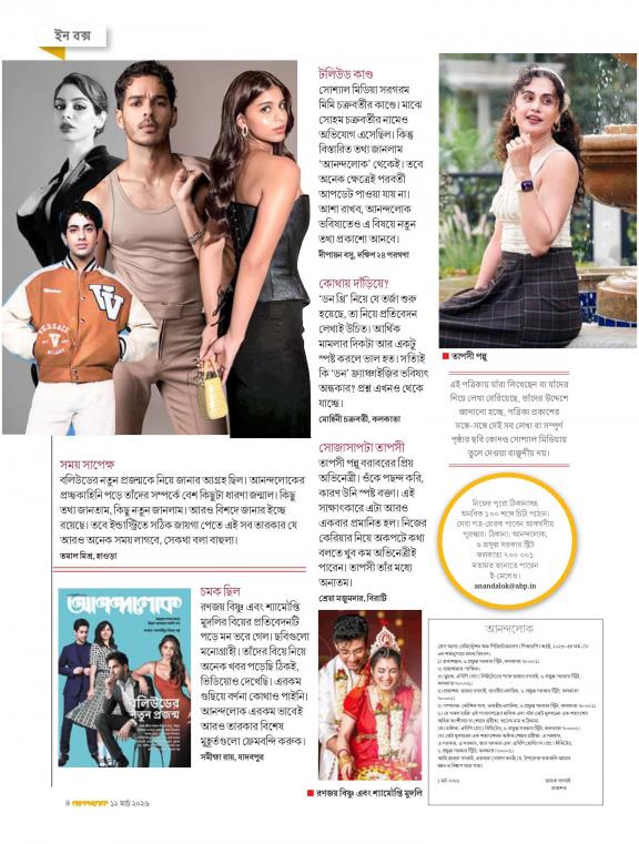The first and one of its kind "Bangla‟ celebrity magazine, ANANDALOK shares moments that are exclusive & straight out of the lives of celebrities. Their family, social needs as well as individual outlook towards life creates a relatable space in reader’s mind, making them ‘Social Equals.